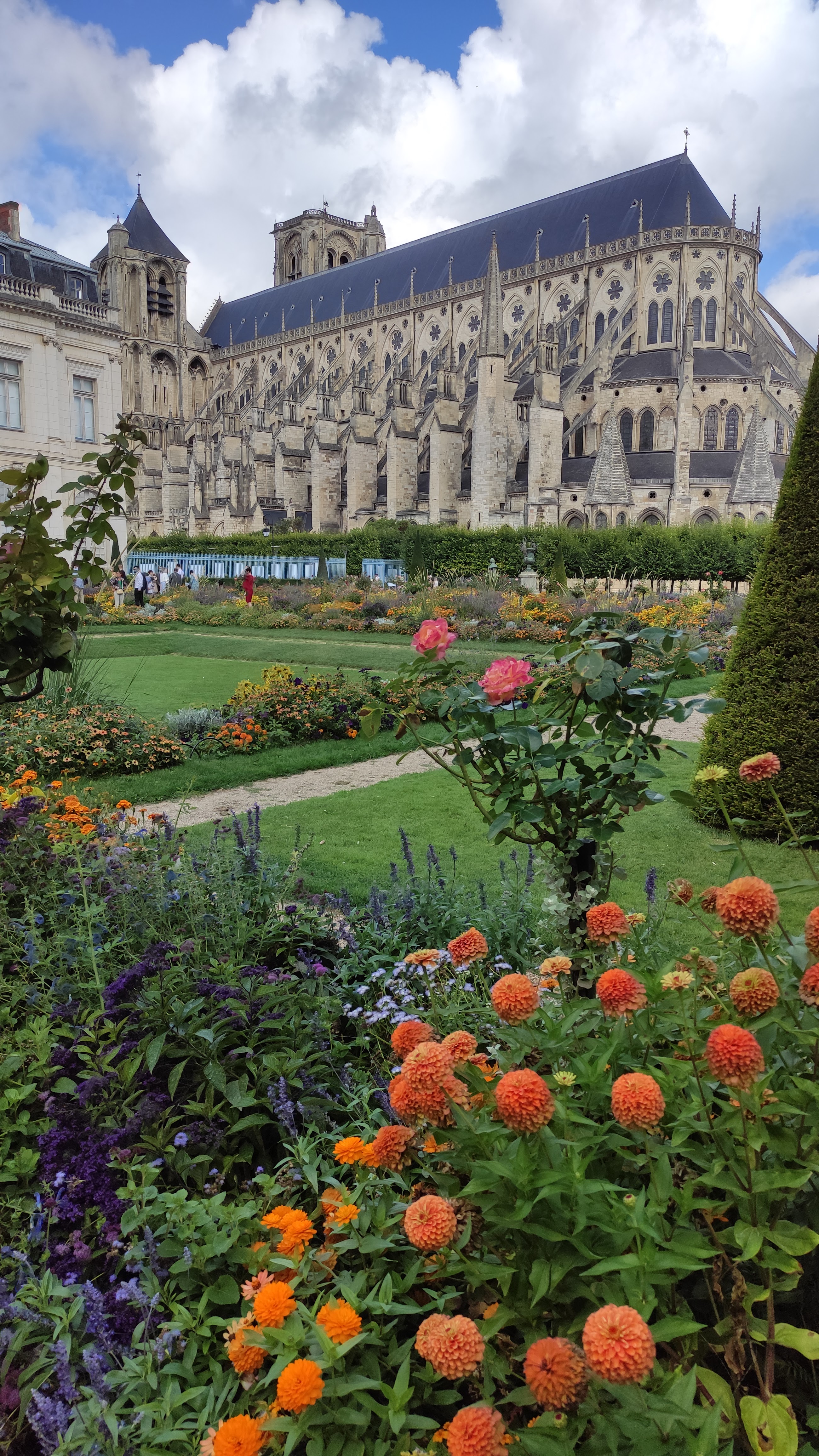 Un joli jardin avec une vue imprenable sur la cathédrale de Bourges.