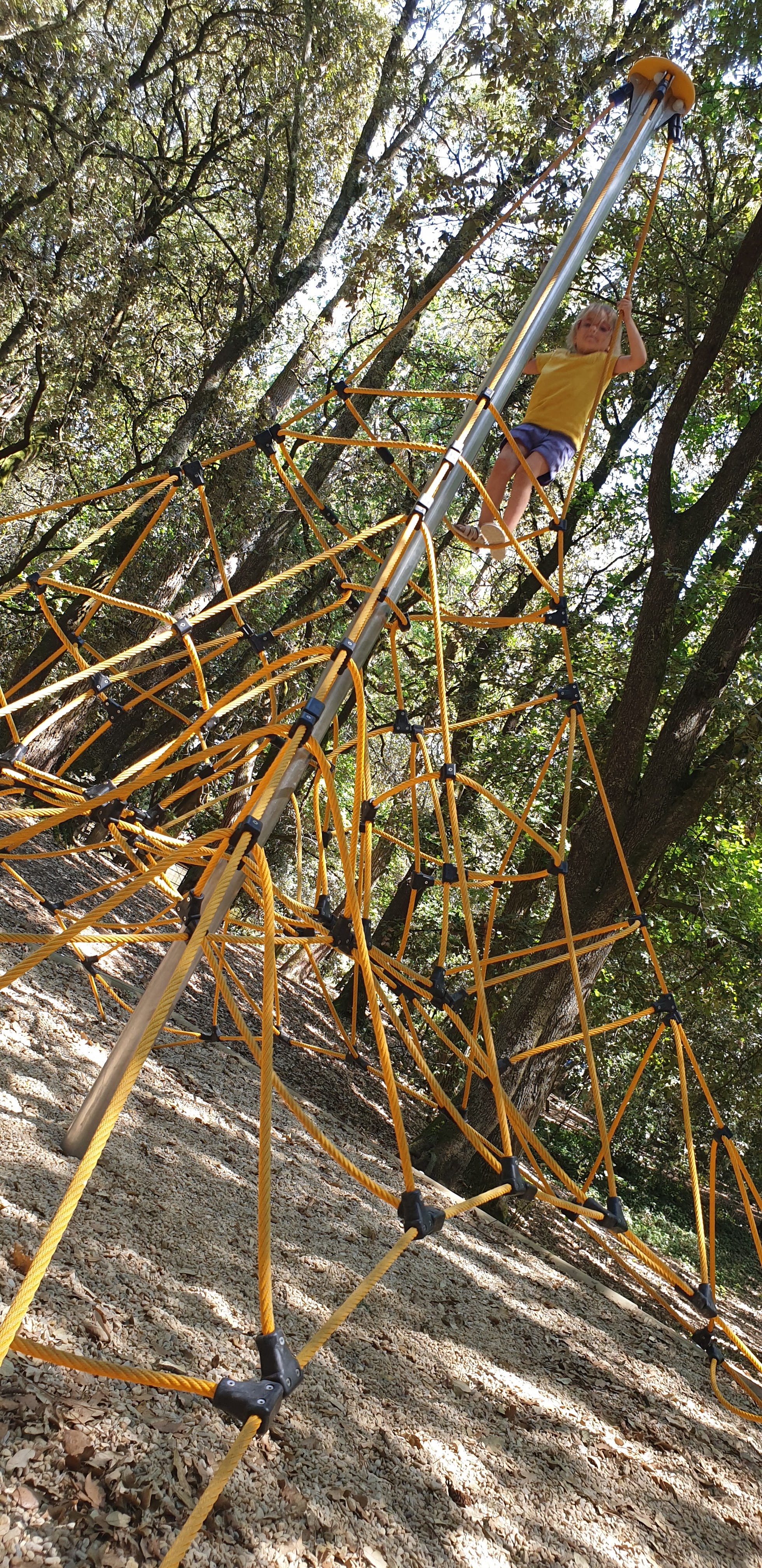 Jeux pour enfants dans un cadre forestier au frais pour les jours de grande chaleur. Tres propre.