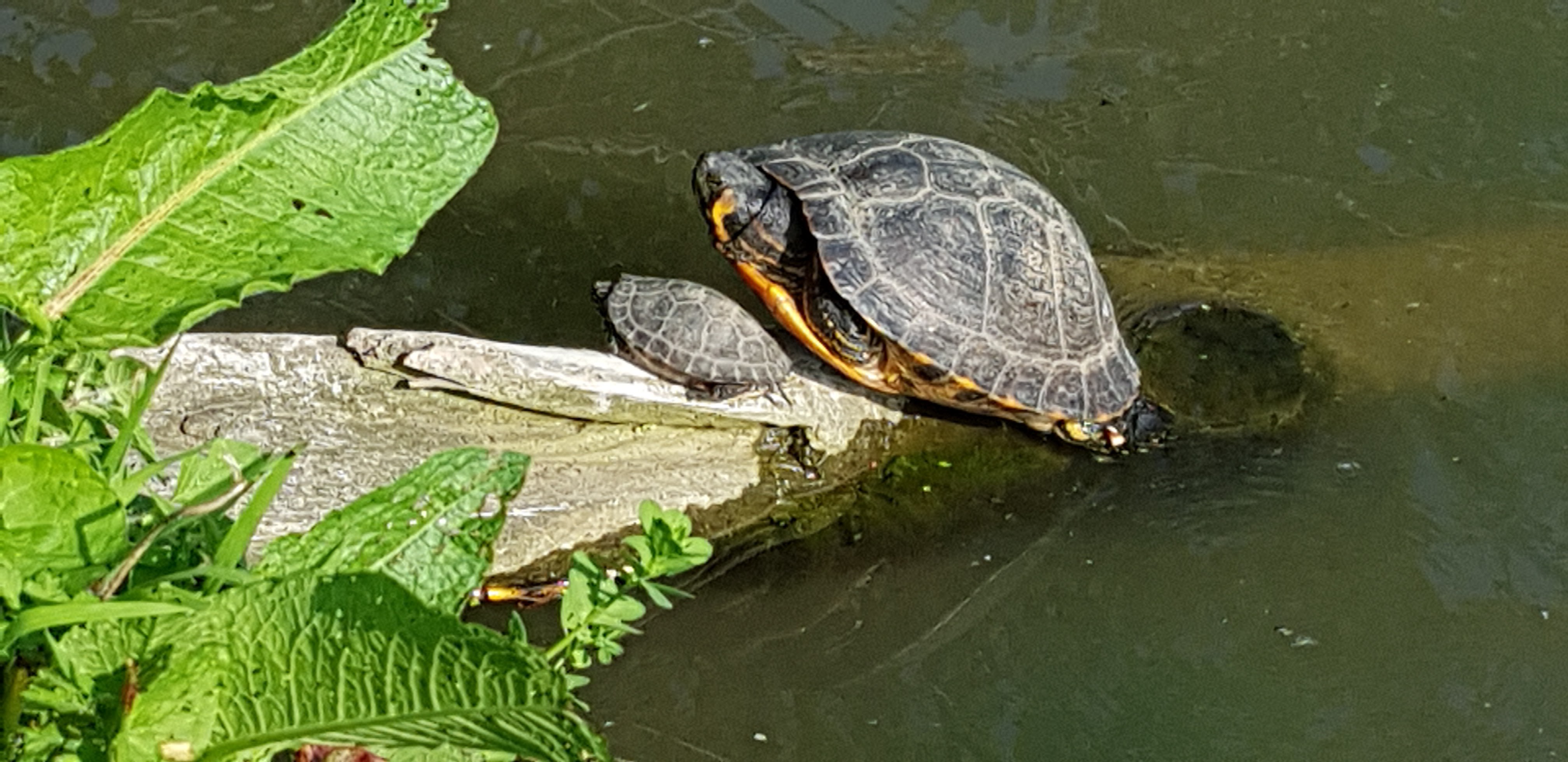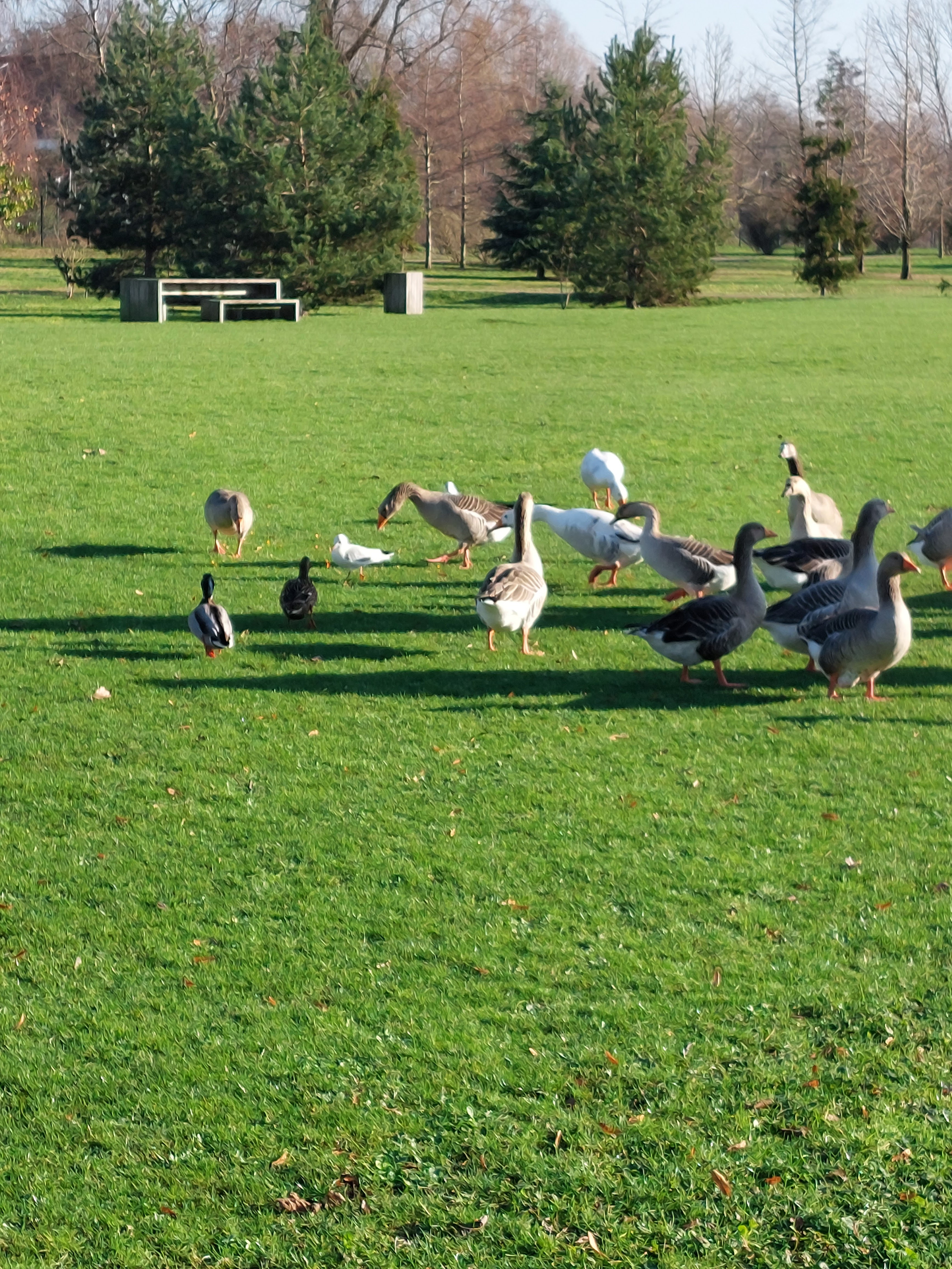 Oies, oisons, canards, canetons, tortues. Très jolie parc.